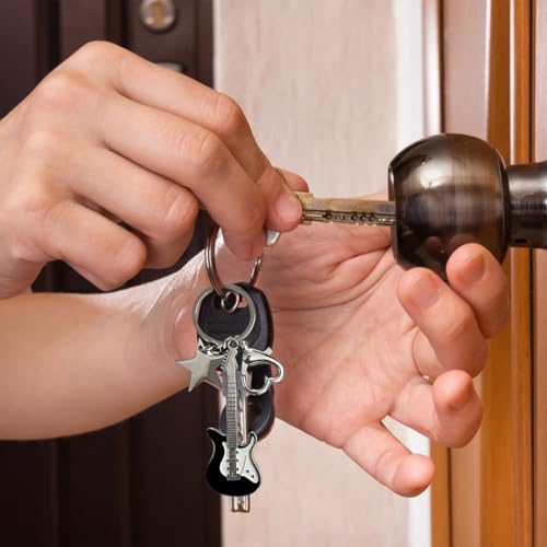 MATERIAAL: Decoratieve gitaar design-sleutelhanger Ze zijn gemaakt van legering, duurzaam, slijtvast en lichtgewicht.